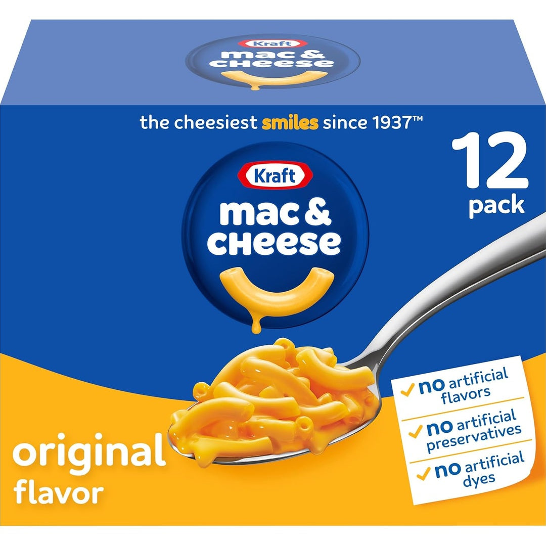 Kraft Mac and Cheese, 12 Boxes, for Easy Dinner or Dinner Sides, Original Flavor, No Artificial Flavors, Preservatives or Dyes, 7.25 oz