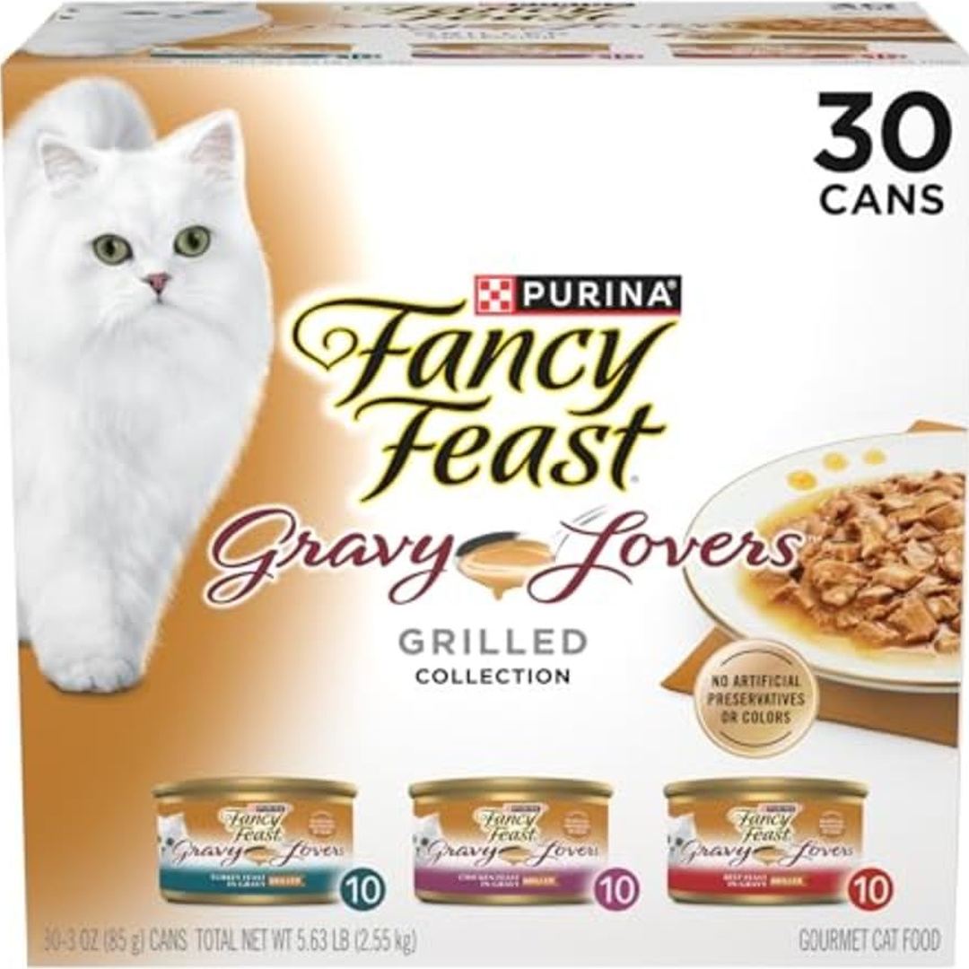 Purina Fancy Feast Gravy Lovers Poultry and Beef Grilled Gourmet Wet Cat Food Variety Pack - (Pack of 30) 3 oz. Cans