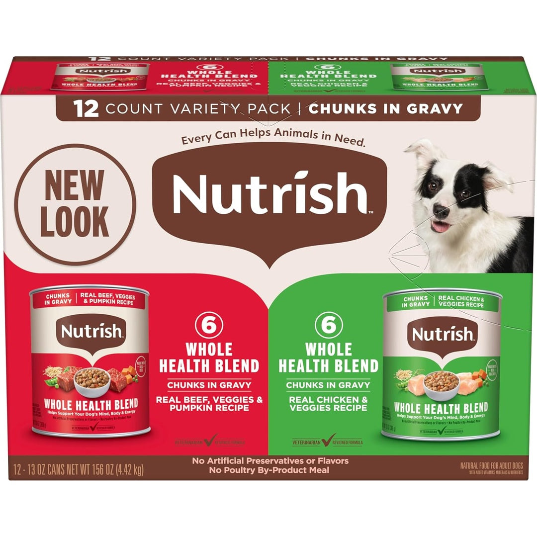 Nutrish Whole Health Blend Chunks in Gravy Variety Pack Wet Dog Food, 13 oz. Can, 12 Count (Rachael Ray)