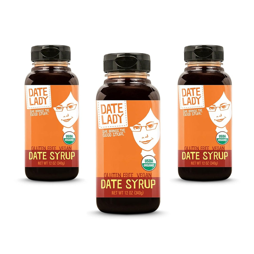 Date Lady Date Syrup 12 oz Squeeze Bottle | Organic, Vegan, Paleo, Gluten-free & Kosher (3-Pack) Sugar Substitute | More Nutrition Than Maple Syrup or Honey
