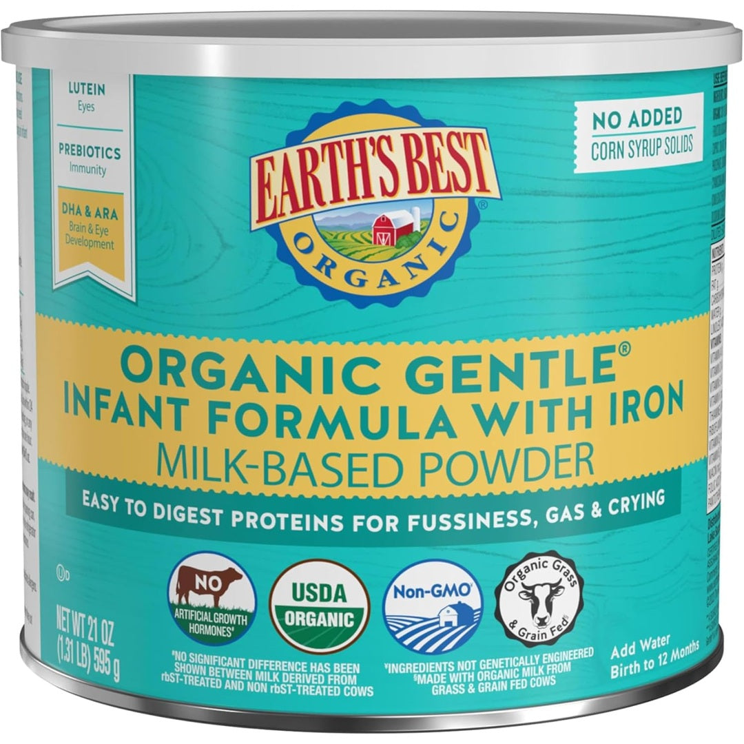 Earth's Best Organic Baby Formula, Gentle Infant Formula for 0-12 Months, Milk-Based Powder with Iron, Omega-3 DHA & Omega-6 ARA, 21 Ounce Container
