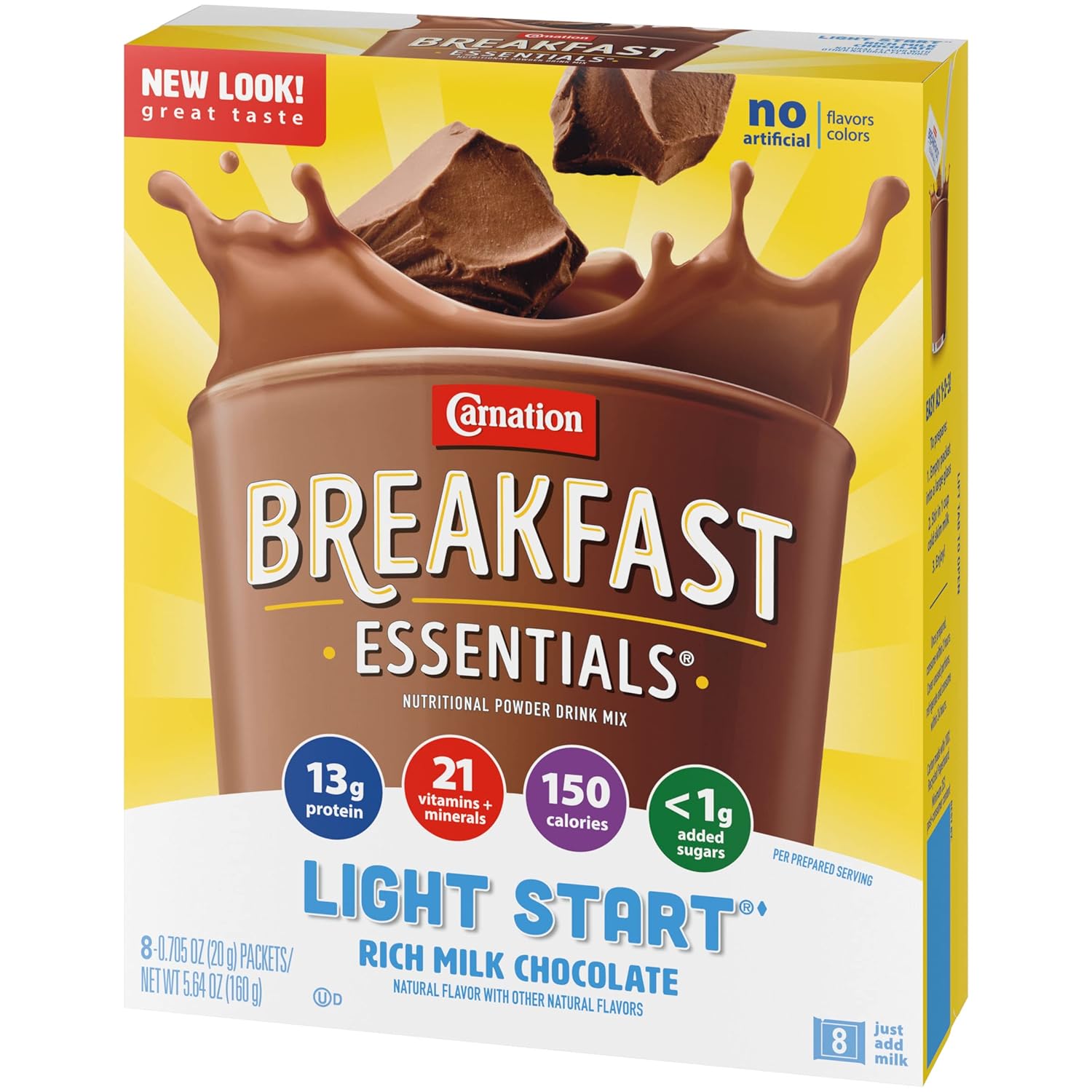 Carnation Breakfast Essentials Light Start Powder Drink Mix, Rich Milk Chocolate.705 Oz, 8 Ct (Pack of 2)