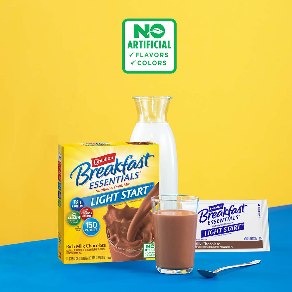 Carnation Breakfast Essentials Light Start Powder Drink Mix, Rich Milk Chocolate, 8 Packets