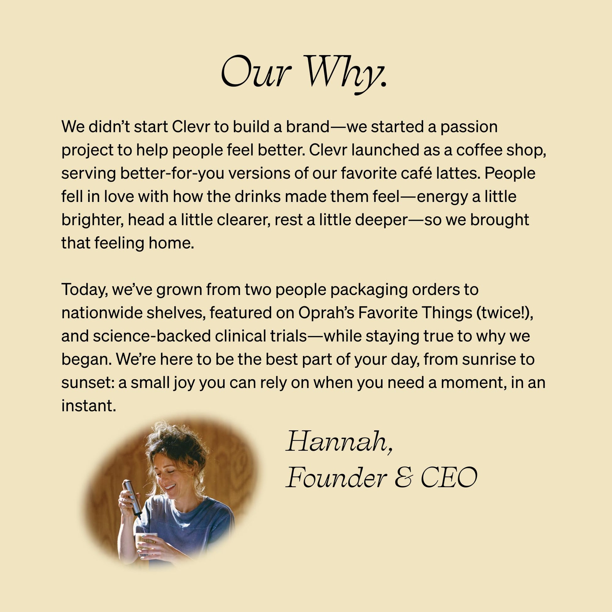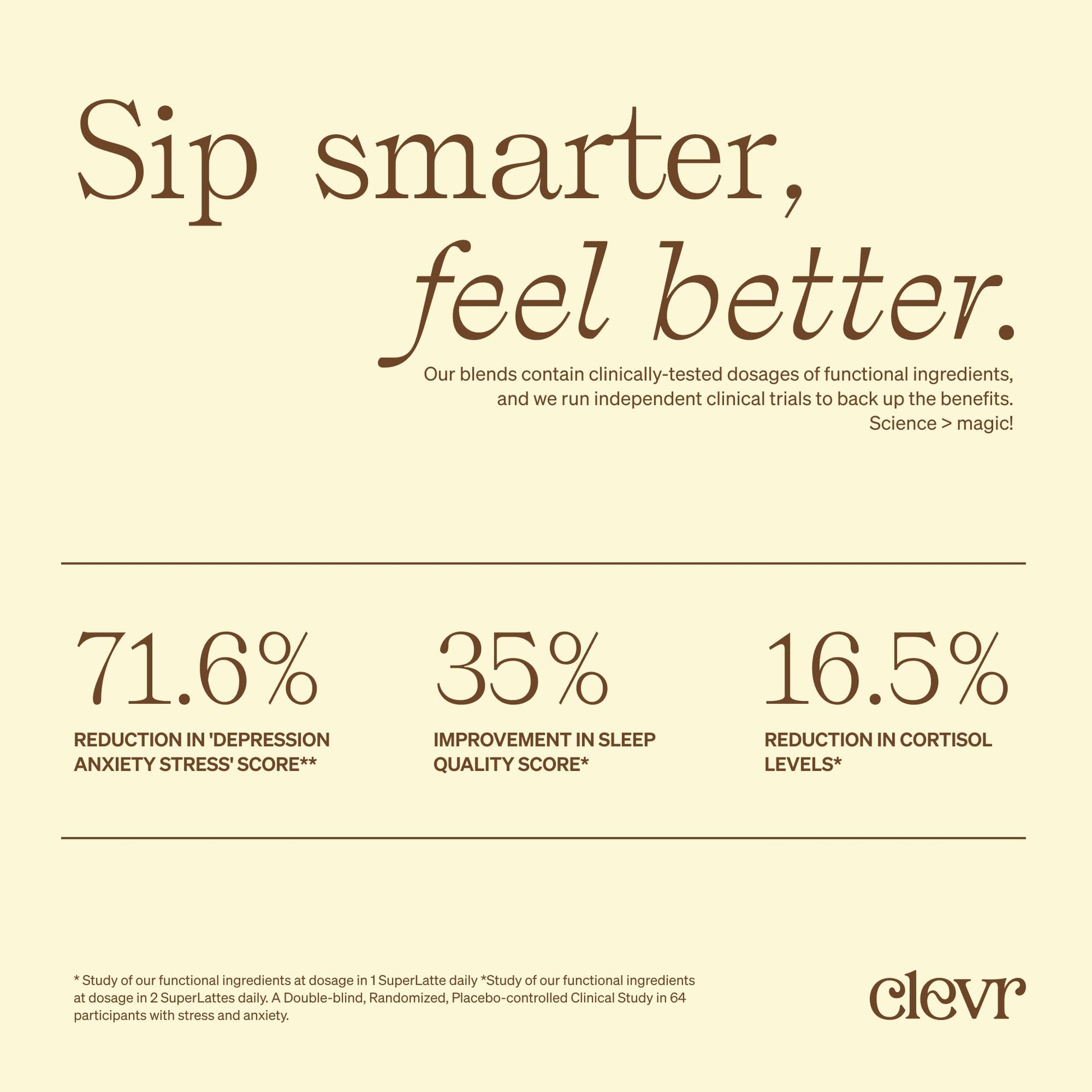 - SIP SMARTER, FEEL BETTER: Our hope is to help you make your first and easiest decision each day. We want you feeling nourished and energized with lattes that are restorative and not extractive, so you can fully show up for yourself and your community. If you aren’t loving your lattes, please reach out to us so we can make things right.