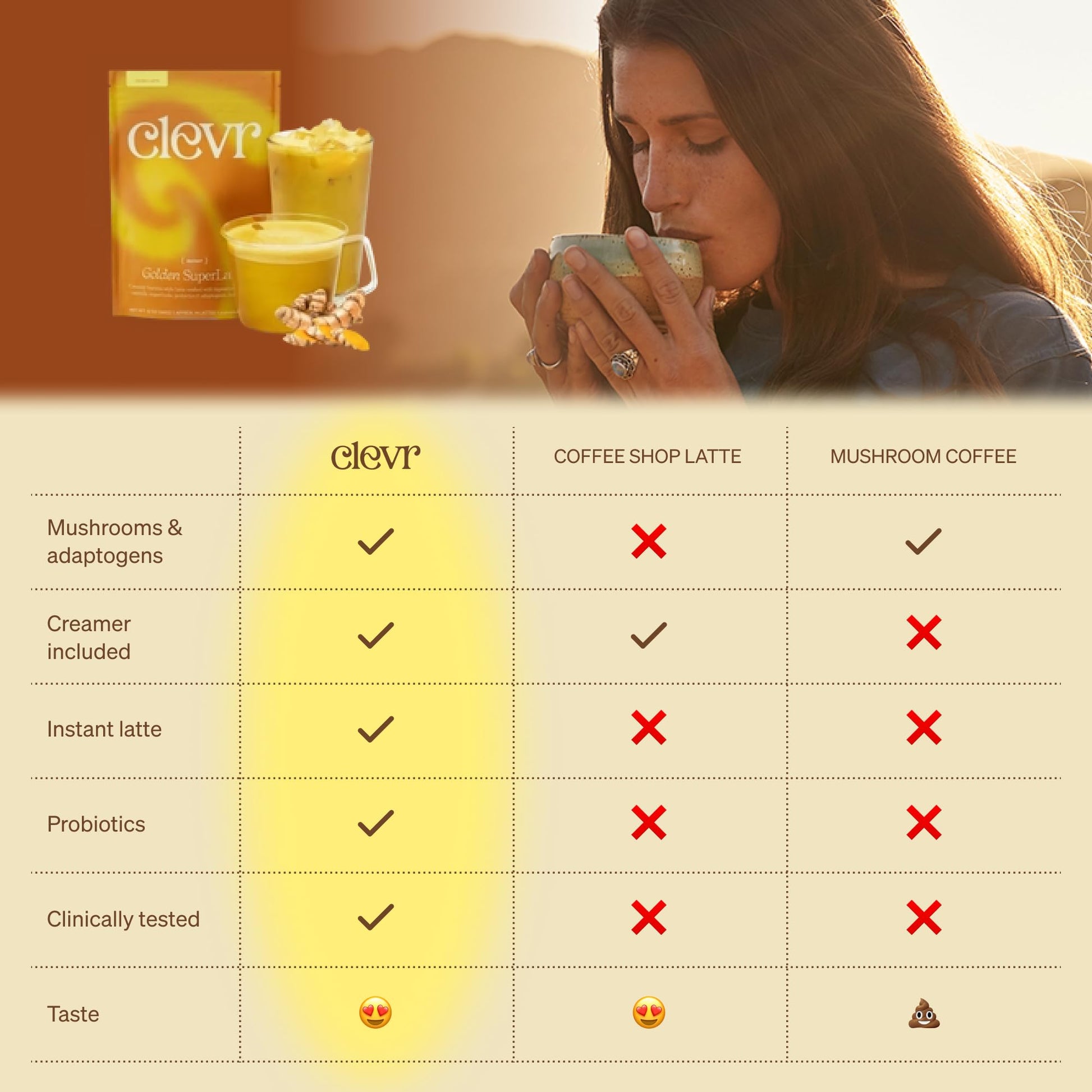 Clevr Organic Matcha Green Tea Latte, Instant Ceremonial Grade, Superfood Powder Blend with Oat Milk, Lions Mane, Reishi Mushroom, Coconut Cream, Ashwagandha, Serve Hot or Iced, (14 Lattes)