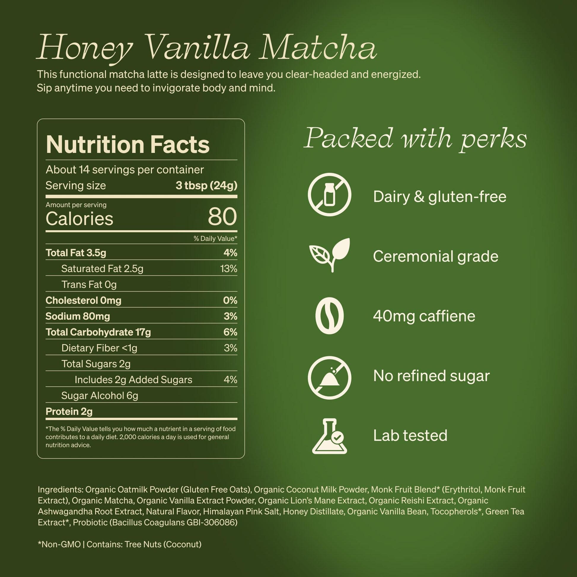 - CEREMONIAL GRADE MATCHA POWDER: Introducing our Matcha SuperLatte—A ceremonial-grade matcha latte for steady energy. Upgraded with relaxing adaptogens, probiotics for gut health, and antioxidants for vibrant skin.
