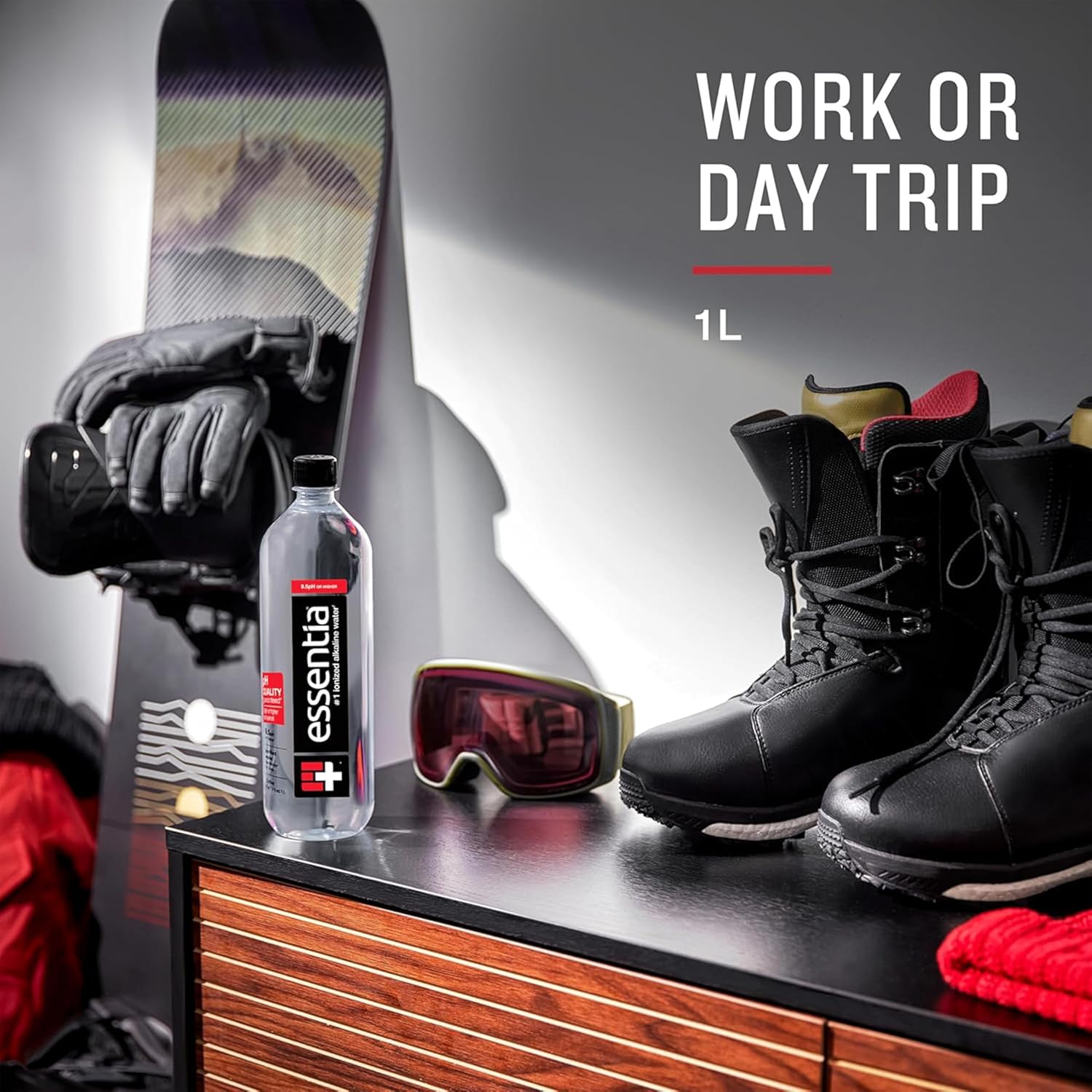 - ESSENTIA WATER 12 PACK: Twelve 1L (33.8 Fl Oz) Essentia Water bottles of ionized alkaline water that’s 99.9% pure with a pH of 9.5 or higher and a clean, smooth taste — so you can stop for nothing
