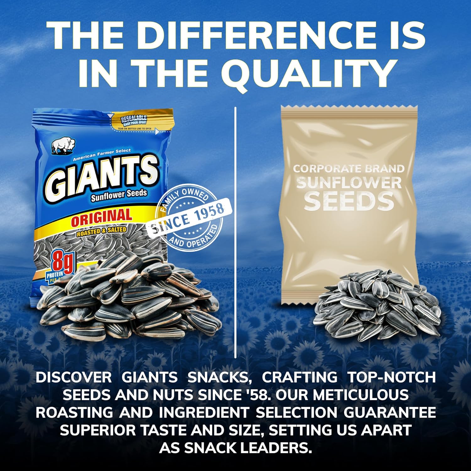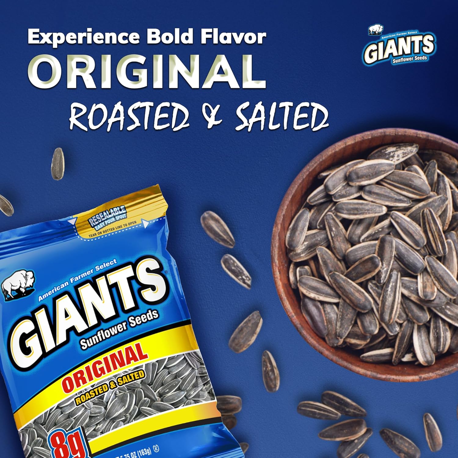 GIANTS Original Sunflower Seeds - Sunflower Seeds to Eat, Sunflower Seeds Bulk, Lightly Salted Sunflower Seeds for Eating, High Protein Snack - 5.75 oz Resealable Bags (Case of 12)