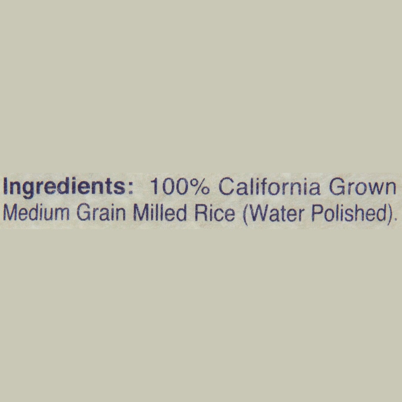 - 100 percent California grown medium grain milled rice