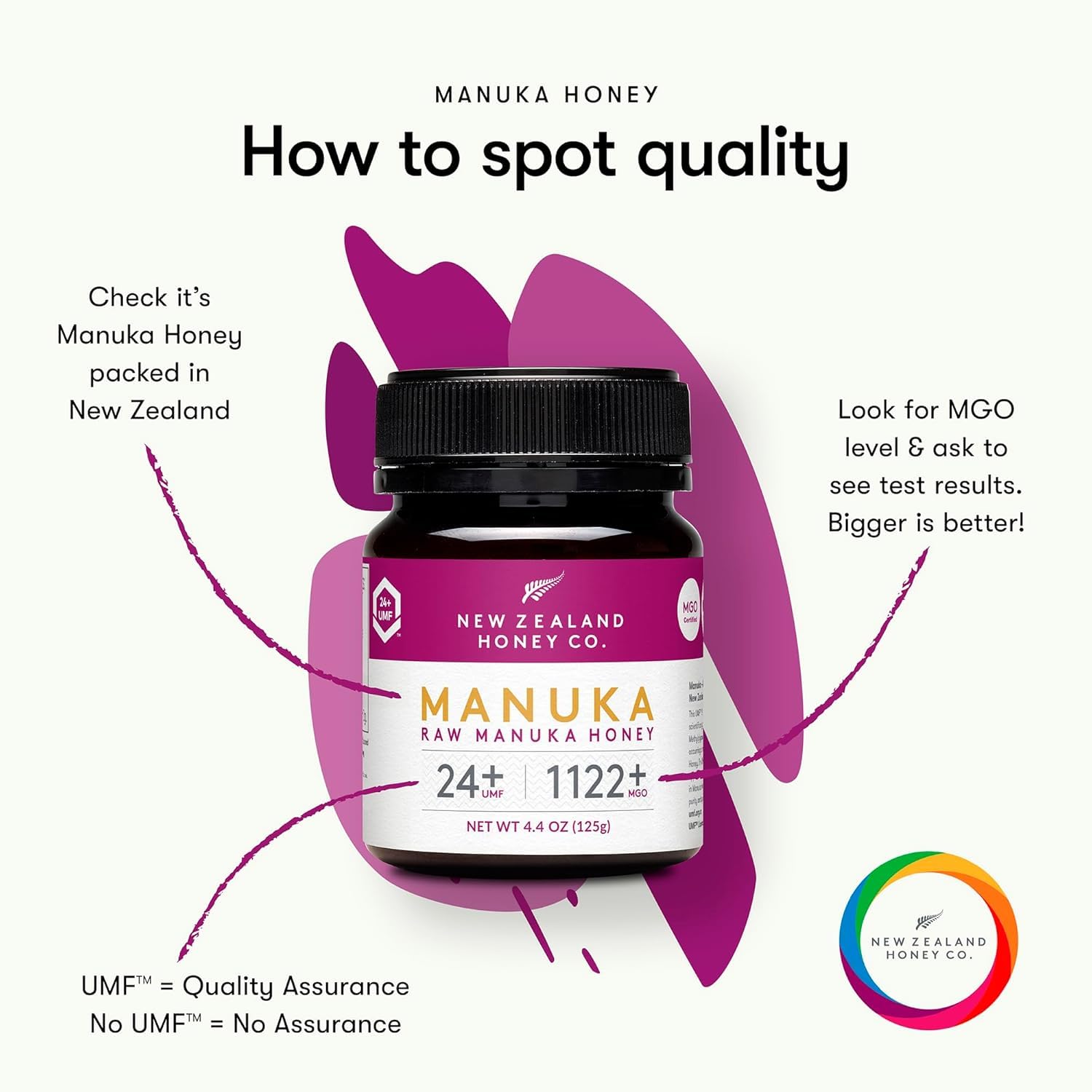 New Zealand Honey Co. Raw Manuka Honey UMF 24+ / MGO 1122+ | 4.4oz | 125g | Medical Grade Raw Honey