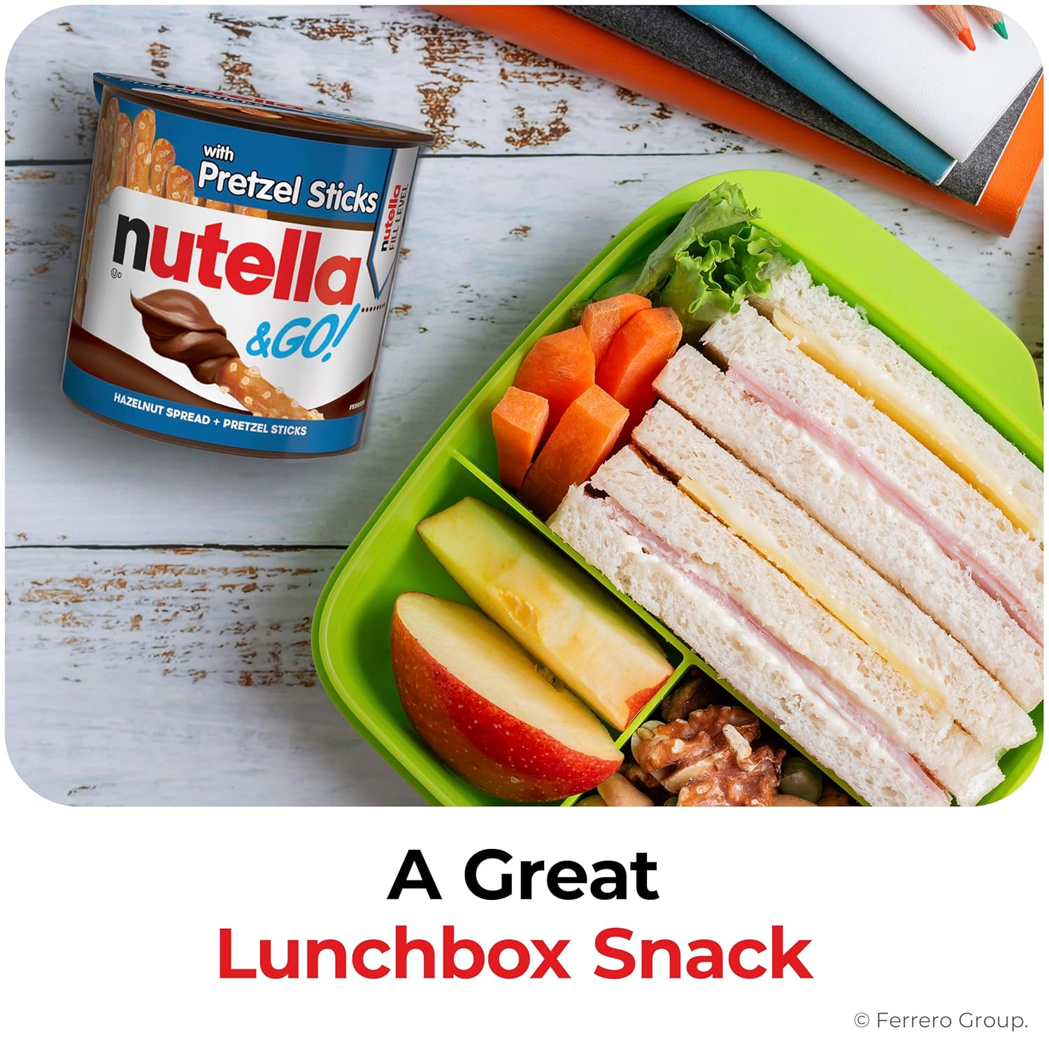 - NUTELLA HAZELNUT SNACK CUP: Discover the Original Hazelnut Spread in a fun and convenient snack cup with pretzel sticks that's perfect anytime, anywhere. Dip into wow with this 24-pack of Nutella & GO!