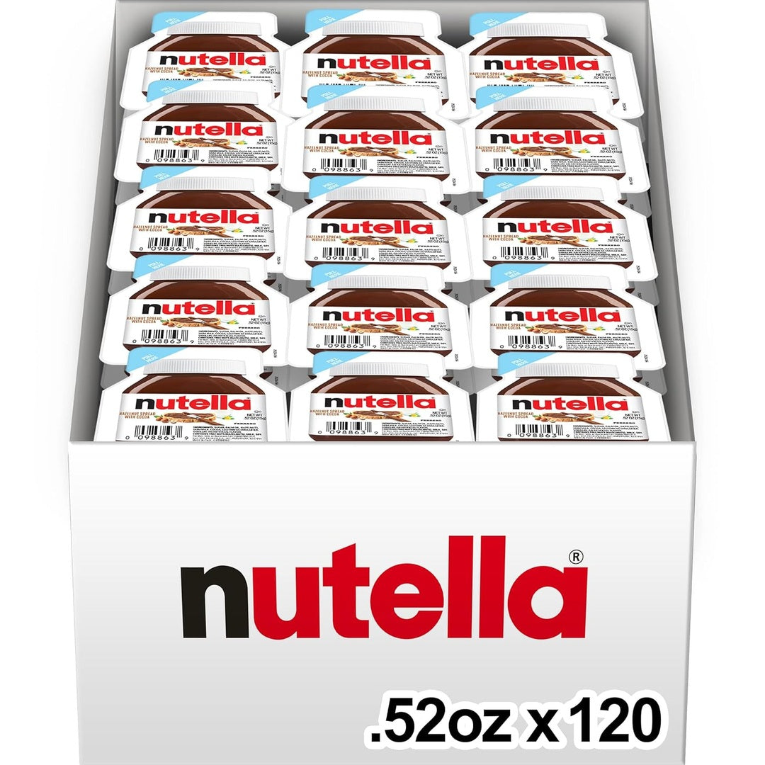 Nutella Hazelnut Spread with Cocoa for Breakfast, Bulk 120 Pack Mini Cups, 0.52 oz Each, Holiday Baking and Desserts