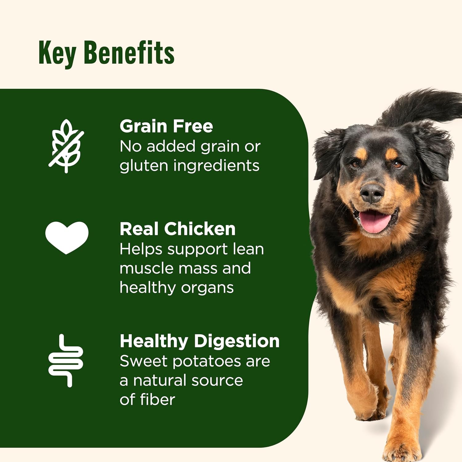 - Contains one (1) 13 lb. bag of premium grain free dry dog food with chicken and sweet potatoes for dogs of all ages