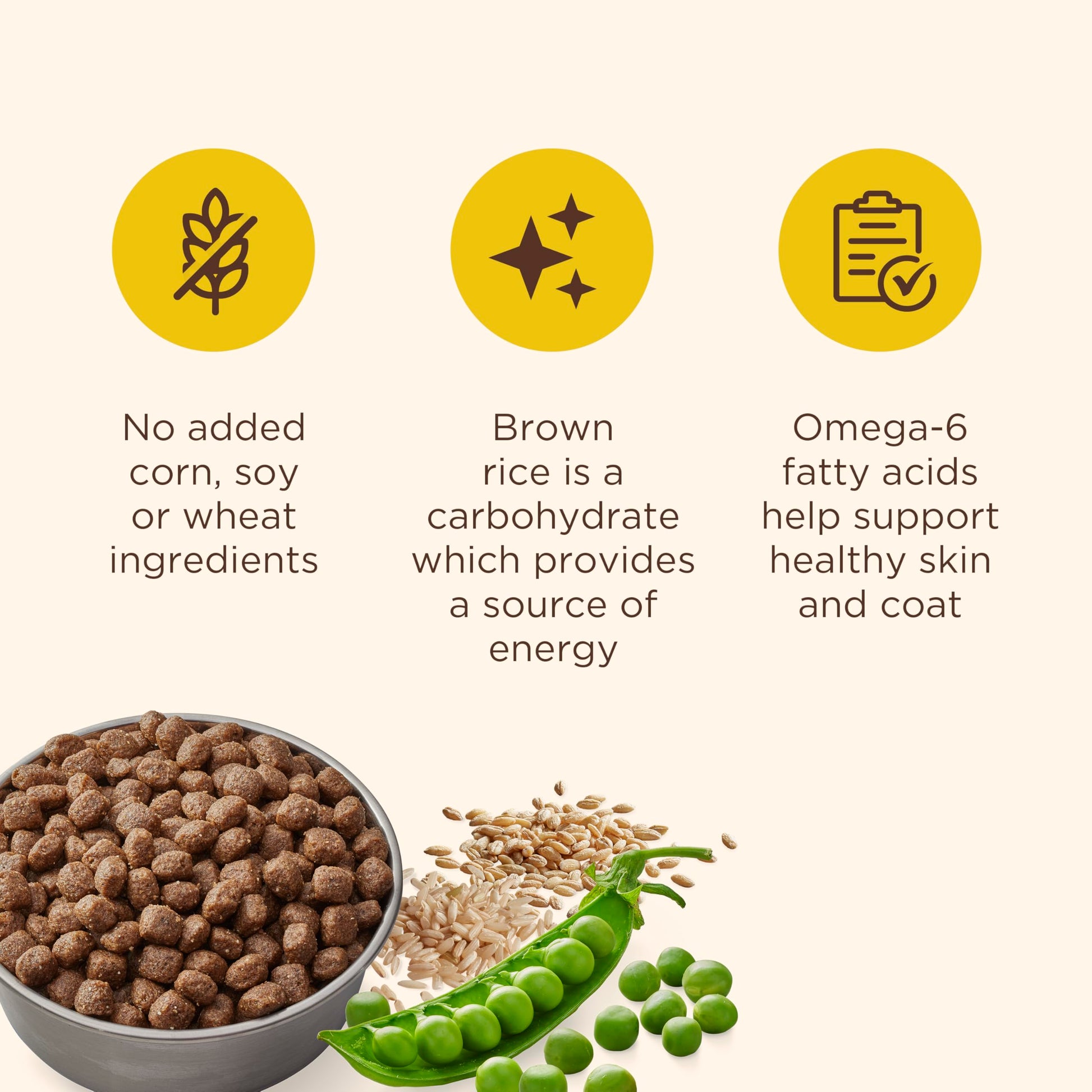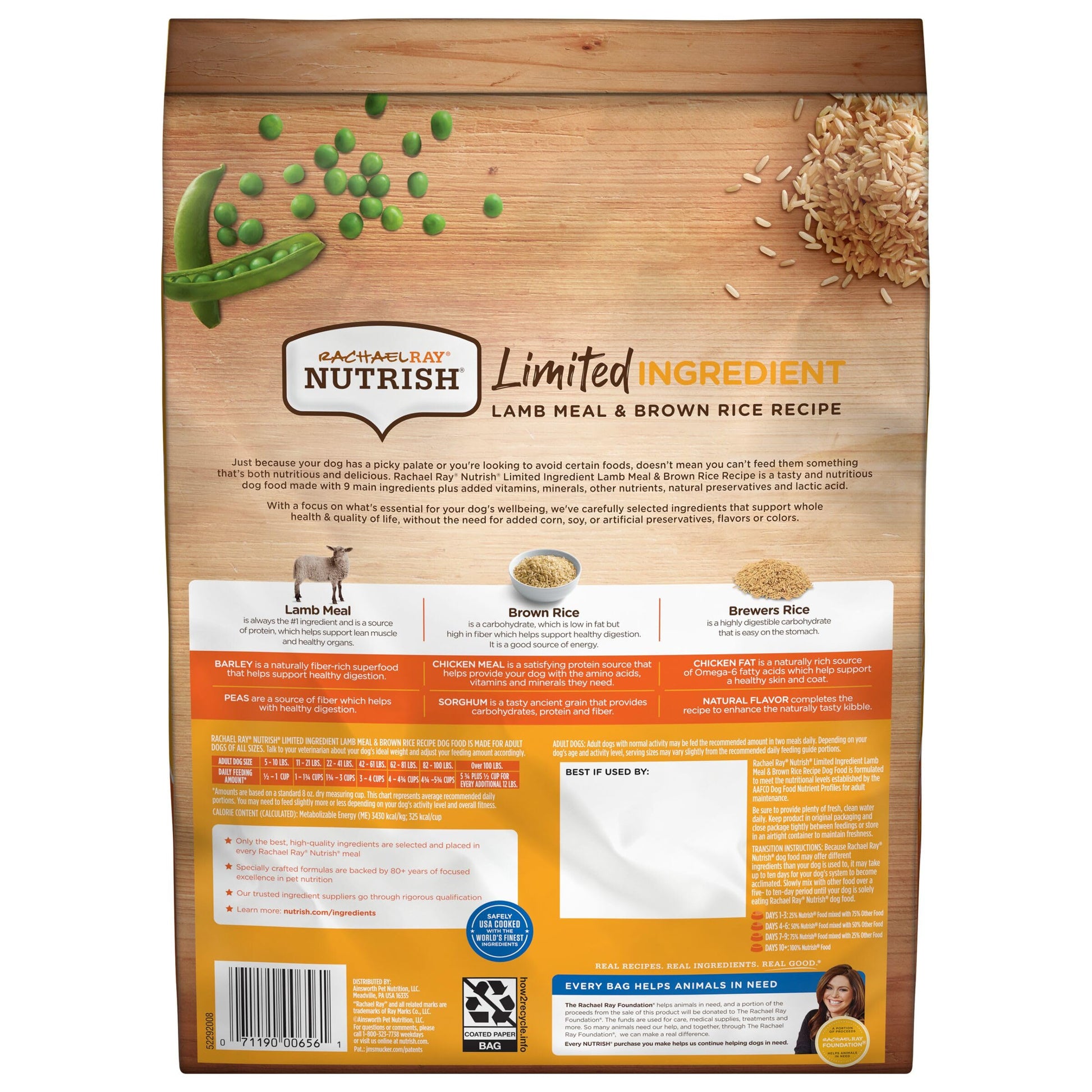 - 8 macro-nutrient sources: lamb meal, brown rice, brewers' rice, peas, pearled barley, grain sorghum, chicken meal, chicken fat