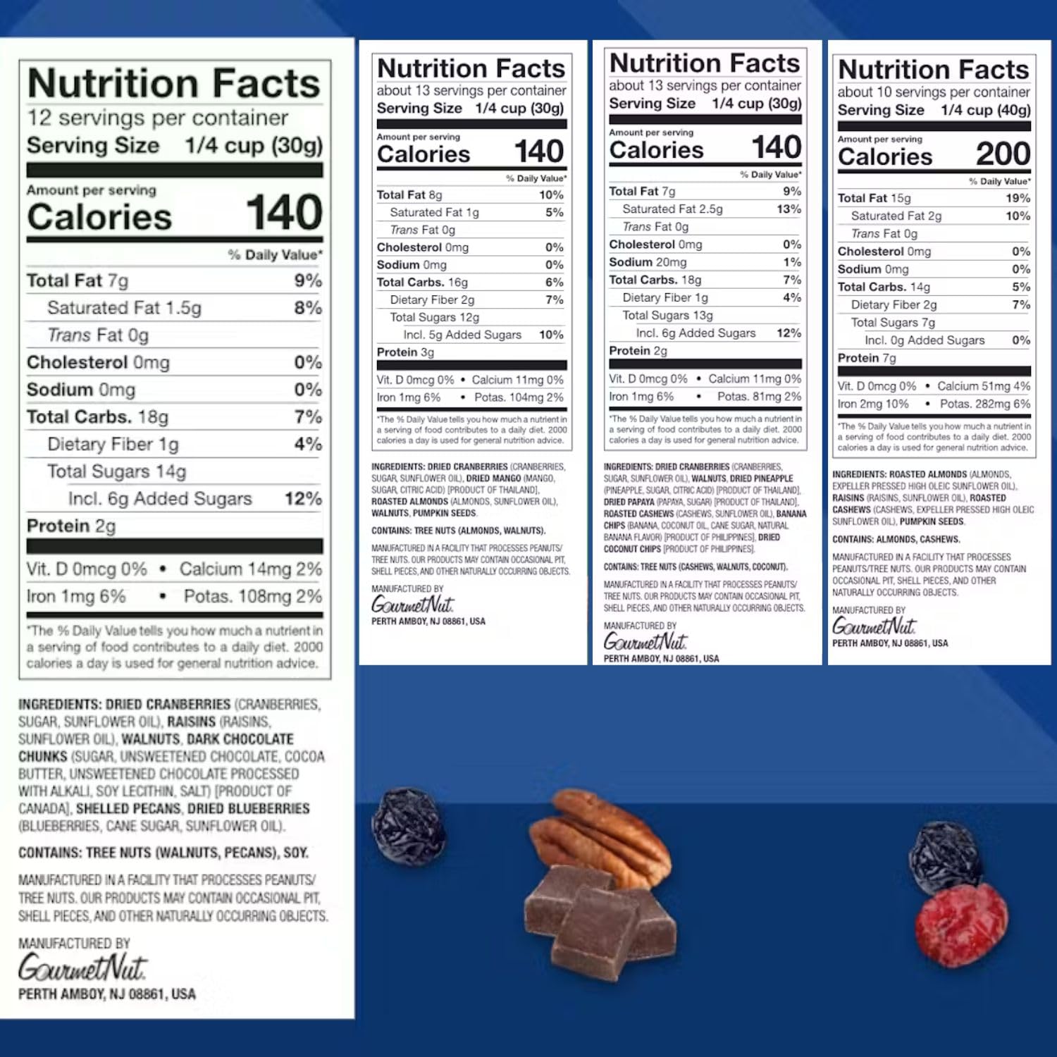 - Gourmet Nut - All of our mixes are crafted from carefully selected ingredients and packaged in premium, small batch blends that provide the nutrients your body needs to keep you going and feeling your best. All ingredients are sourced from the highest quality farms and go through a rigorous approval process in order for us to stand behind them and add our Gourmet Nut stamp of approval. Our mission is to be uncompromising when it comes to getting the freshest, most premium ingredients.
