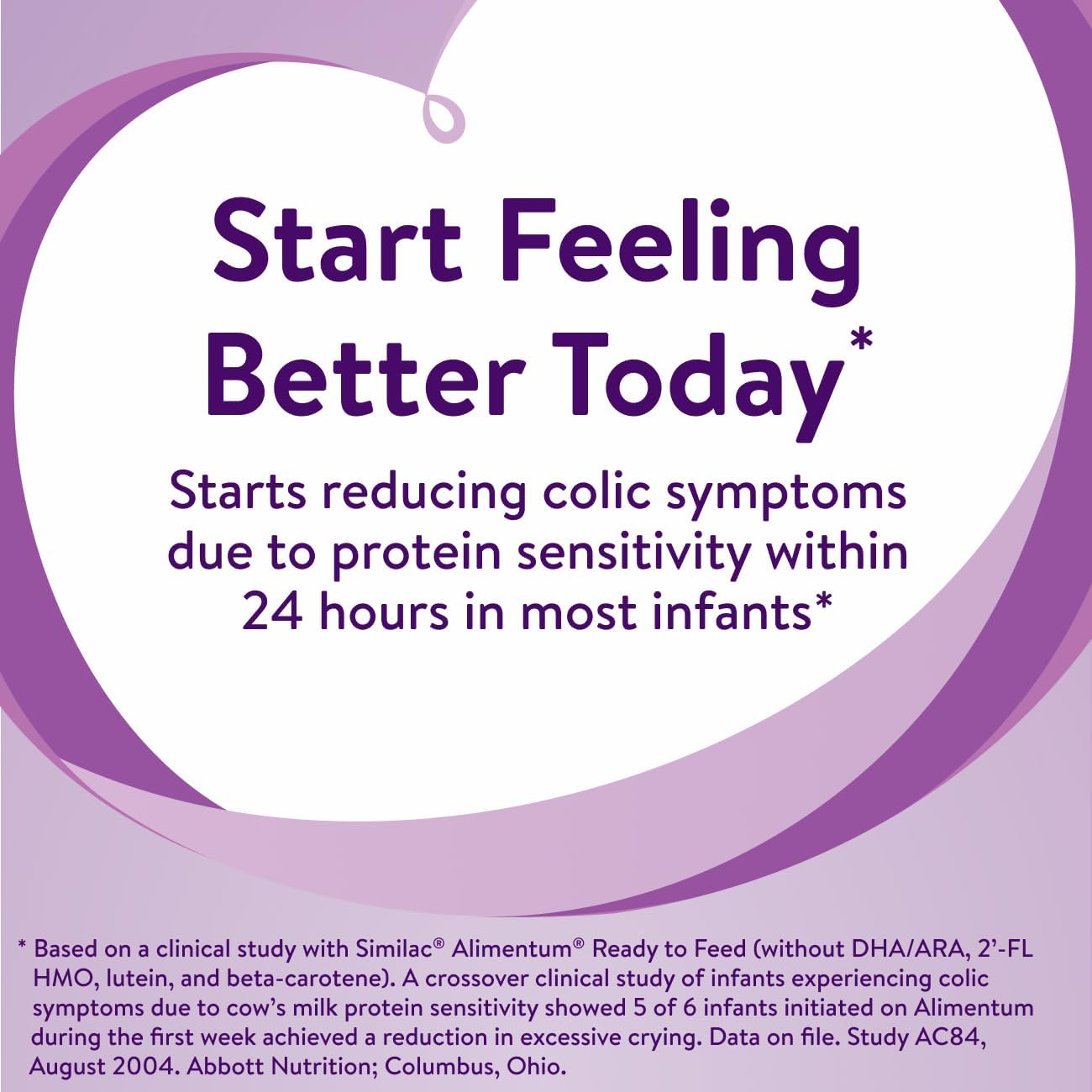 - START FEELING BETTER TODAY: Similac Alimentum starts reducing colic symptoms due to protein sensitivity within 24 hours in most infants