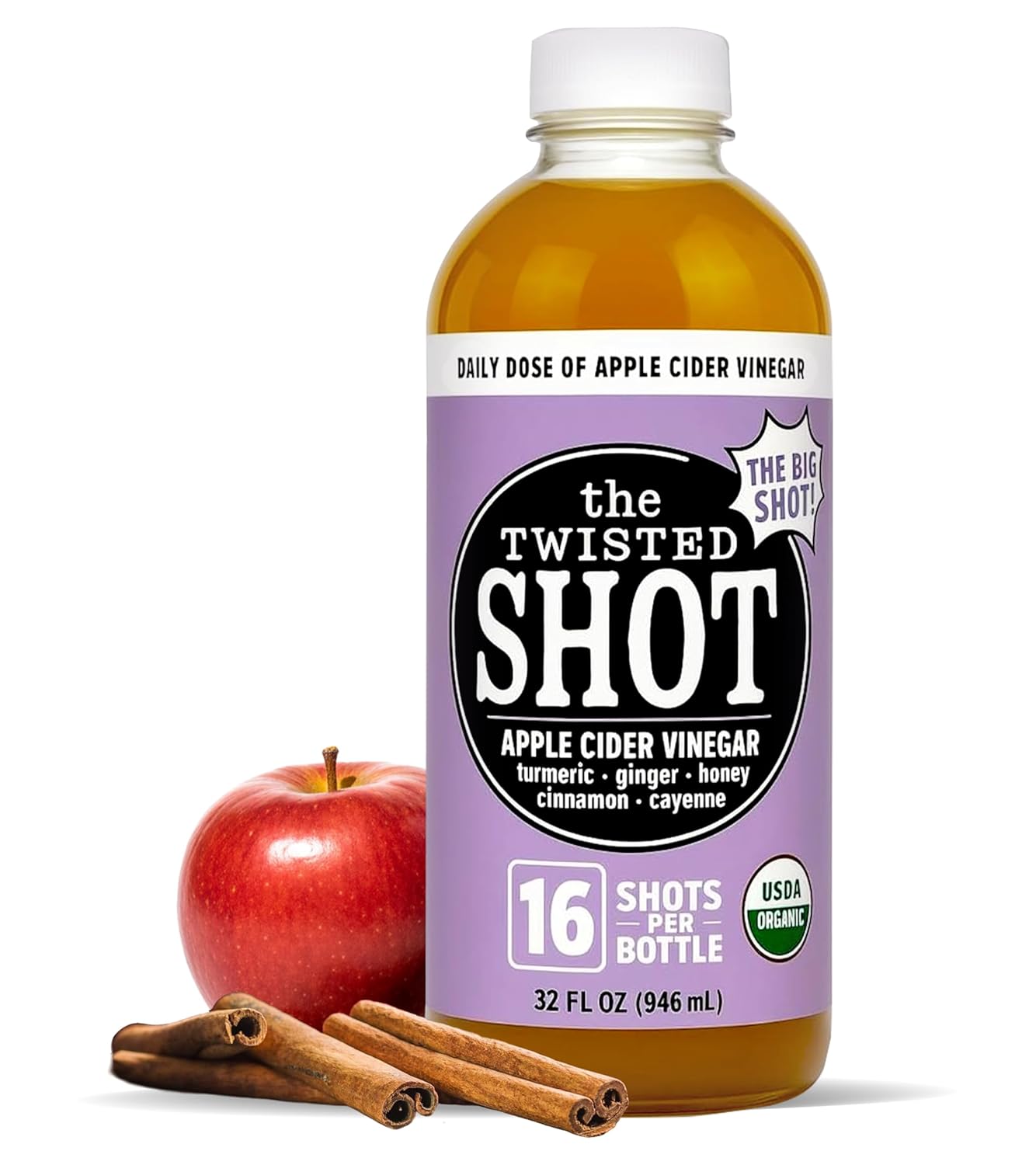 - Daily Wellness Shot: Enjoy a convenient and delicious apple cider vinegar shot infused with ginger, turmeric, cinnamon, cayenne, and honey to support your wellness routine.